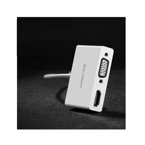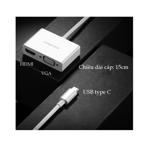 Bộ chuyển đổi Ugreen Type-C sang HDMI + VGA màu trắng cho phép kết nối đa dạng giữa thiết bị USB-C và các màn hình, TV. Với cổng HDMI hỗ trợ hình ảnh 3D sắc nét và độ phân giải 4K*2K ở 30Hz, cùng cổng VGA hỗ trợ độ phân giải Full HD 60Hz, bạn có thể dễ dàng mở rộng không gian hiển thị. Bộ chuyển đổi hỗ trợ kết nối đồng thời cả hai cổng HDMI và VGA, mang lại sự tiện dụng tuyệt vời. Cáp dài 15cm, chất liệu nhựa ABS bền bỉ, với màu trắng thanh lịch, dễ dàng sử dụng trong mọi môi trường.