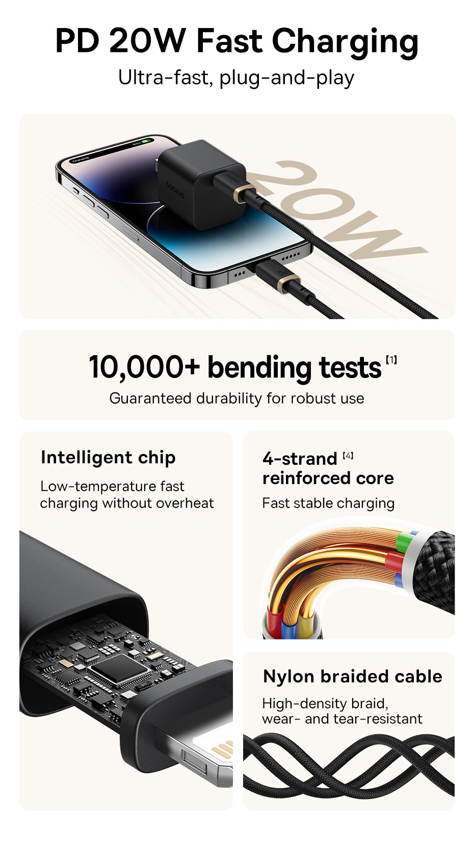 Tính năng nổi bật của Cáp Sạc Nhanh Baseus Dura Series C to Lightning 20W