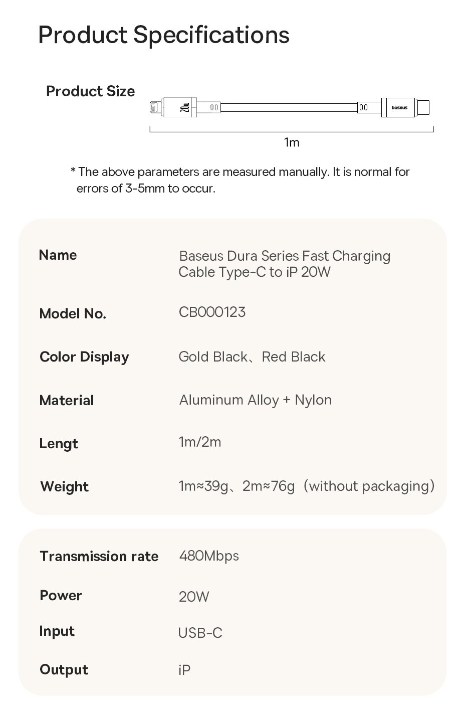 Giới thiệu Cáp Sạc Nhanh Baseus Dura Series C to Lightning 20W (480Mbps)