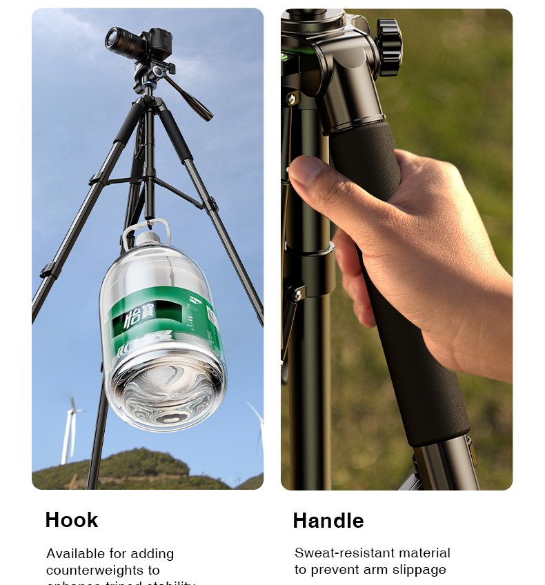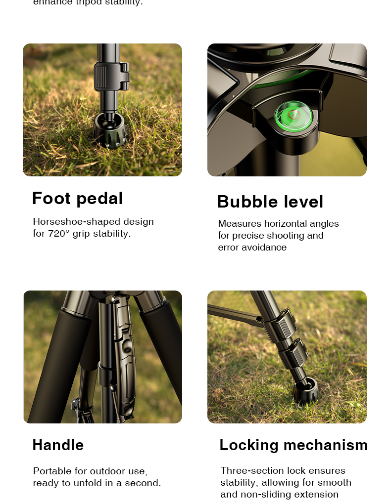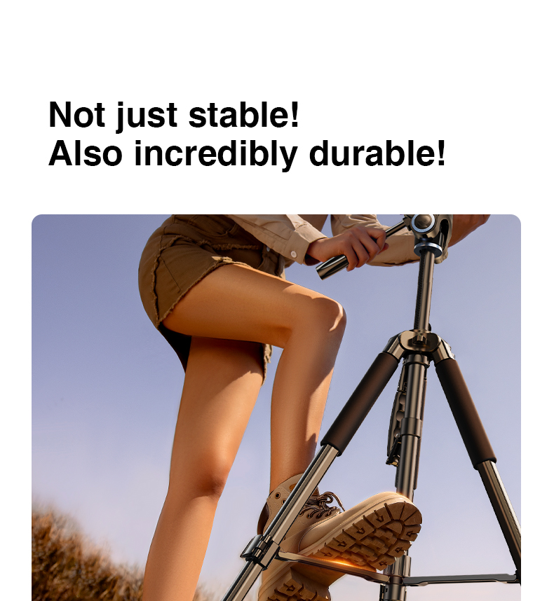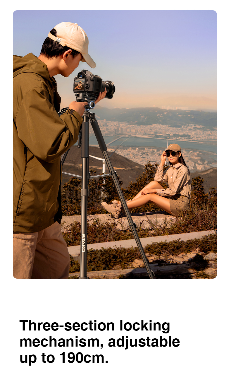 Hệ thống khóa chân ba đoạn giúp cố định chiều cao một cách chắc chắn, ngăn chặn tình trạng rung lắc khi sử dụng. Bạn có thể hoàn toàn yên tâm khi thực hiện các cảnh quay quan trọng.