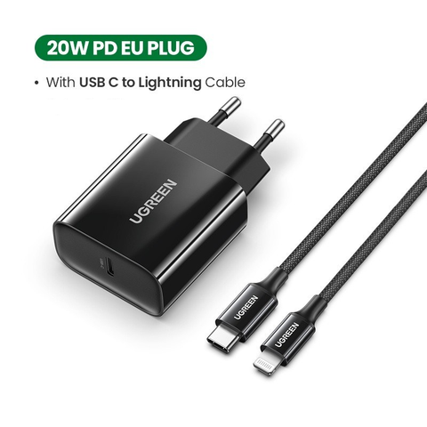 Combo cáp sạc nhanh Ugreen USB-C to Lightning 20W EU CD137 là giải pháp sạc nhanh và hiệu quả cho các thiết bị Apple của bạn. Với công suất 20W, bộ combo này hỗ trợ sạc nhanh PD, giúp bạn tiết kiệm thời gian sạc đáng kể. Sản phẩm được chứng nhận MFi, đảm bảo tương thích hoàn toàn và an toàn cho thiết bị của bạn.