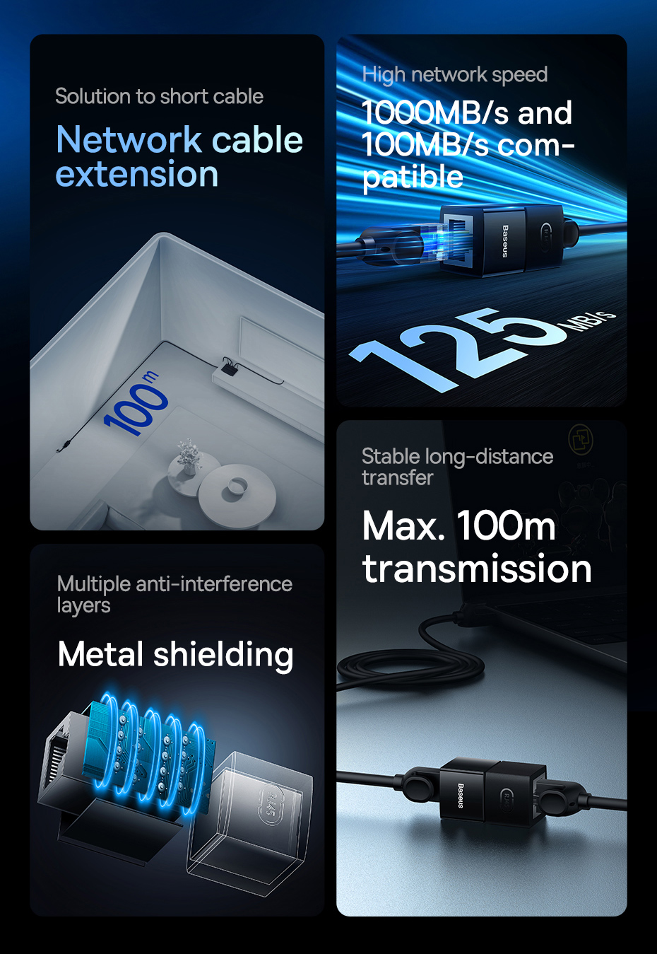 Baseus AirJoy Series Network Cable Connector Cluster trang bị công nghệ giúp tăng tốc độ kết nối mạng, cải thiện hiệu suất tổng thể và giảm thời gian tải dữ liệu. Điều này giúp các thiết bị hoạt động mượt mà hơn khi kết nối mạng, từ máy tính, máy in, tivi, đến các thiết bị điện thoại hay máy chủ.
