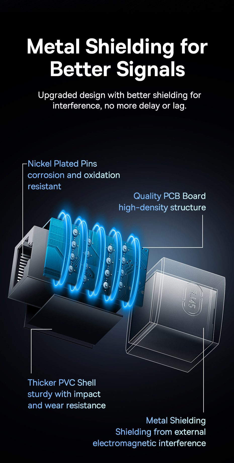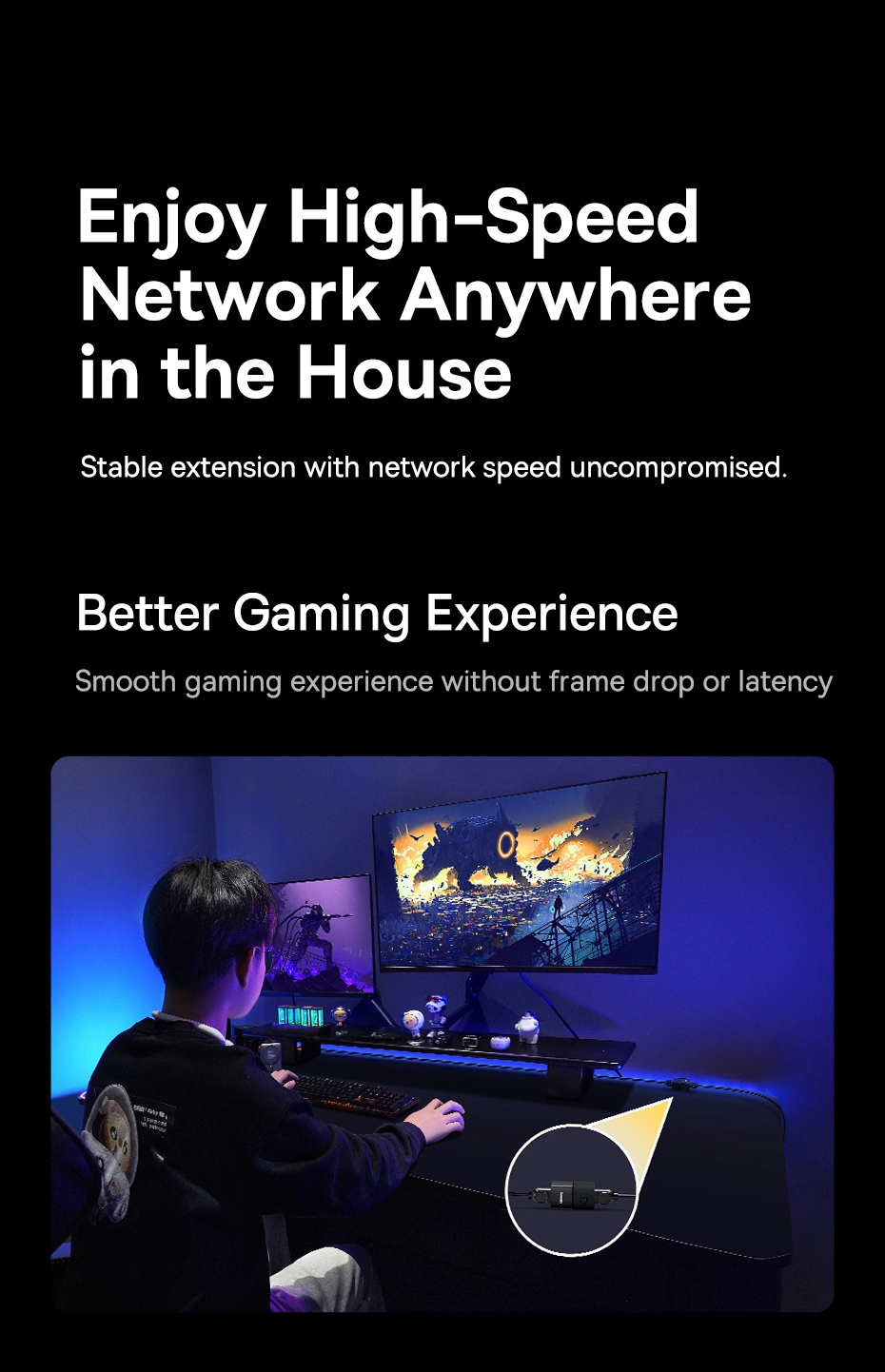 Baseus AirJoy Series được trang bị tính năng chống nhiễu mạnh mẽ, giúp giảm thiểu các vấn đề thường gặp như đứt mạng, giật lag và chập chờn trong quá trình kết nối. Bạn sẽ có một kết nối mạng ổn định và liên tục hơn.