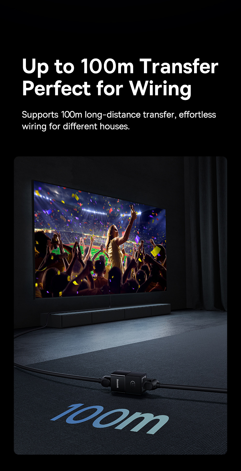 Với khả năng truyền mạng xa lên đến 100m, người dùng có thể sử dụng sản phẩm để thiết lập hệ thống mạng tại các khu vực rộng lớn mà không gặp phải vấn đề về khoảng cách hay gián đoạn tín hiệu.