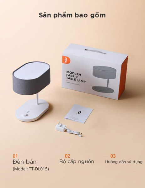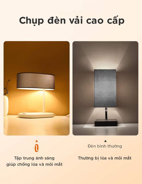 - Thiết kế hiện đại: Đèn có chụp đèn bằng vải cao cấp màu xám, tạo vẻ đẹp sang trọng cho mọi không gian từ phòng ngủ đến phòng khách.