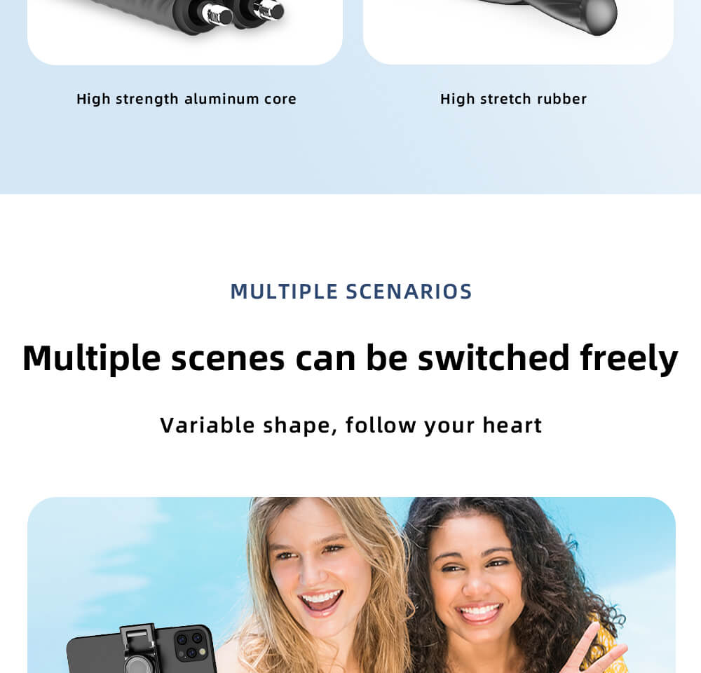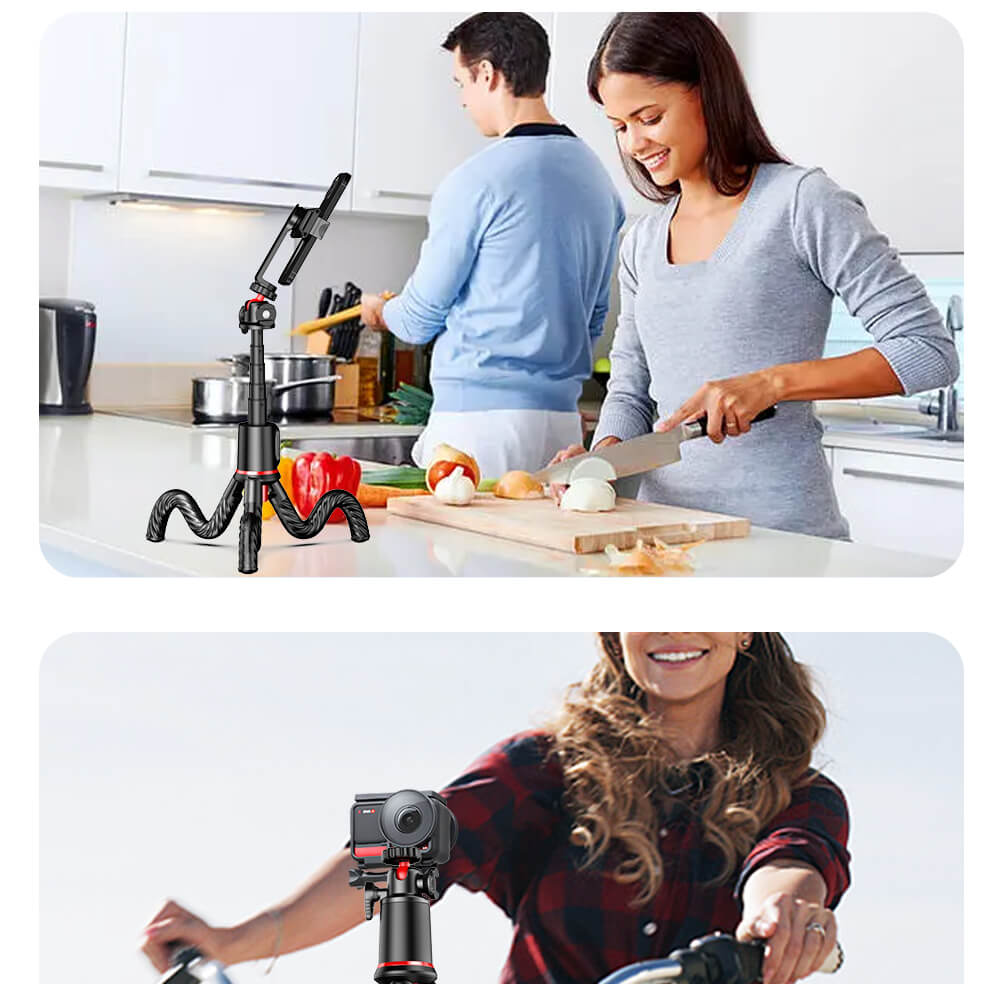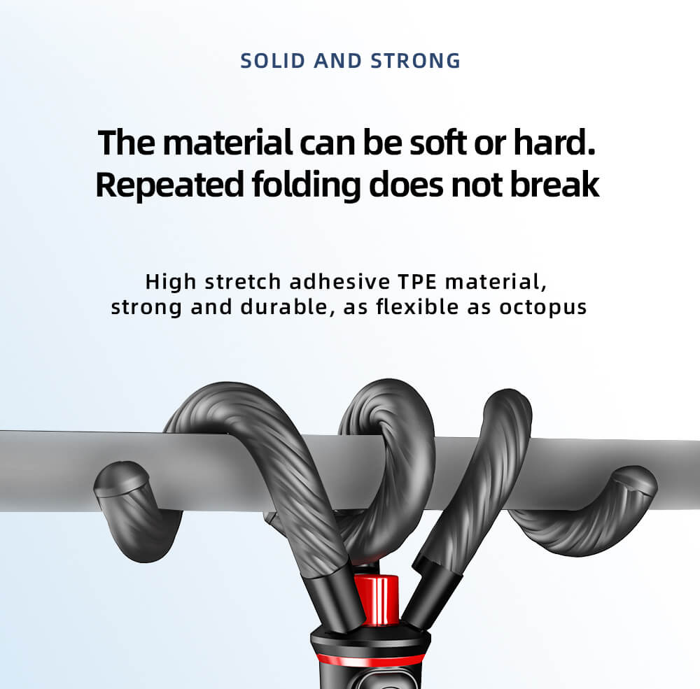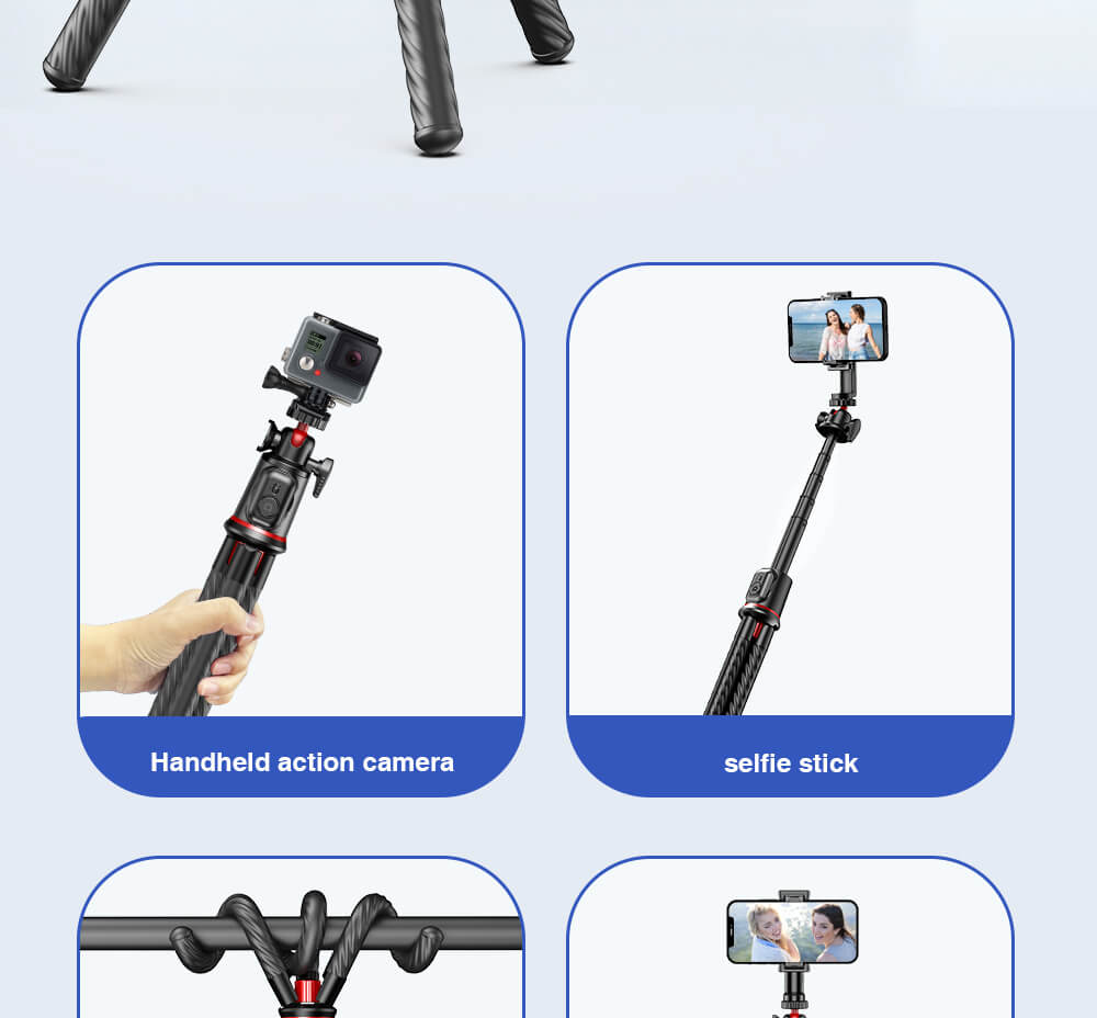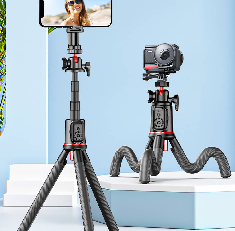 Gậy chụp ảnh Rtako C03 sở hữu các chân tripod dạng bạch tuộc có thể uốn cong, bám chắc trên nhiều loại bề mặt khác nhau như bàn, cây, cột hoặc những địa hình không bằng phẳng. Thiết kế này mang đến sự linh hoạt tuyệt đối, cho phép bạn chụp ảnh hoặc quay video ở mọi nơi, mọi hoàn cảnh.
