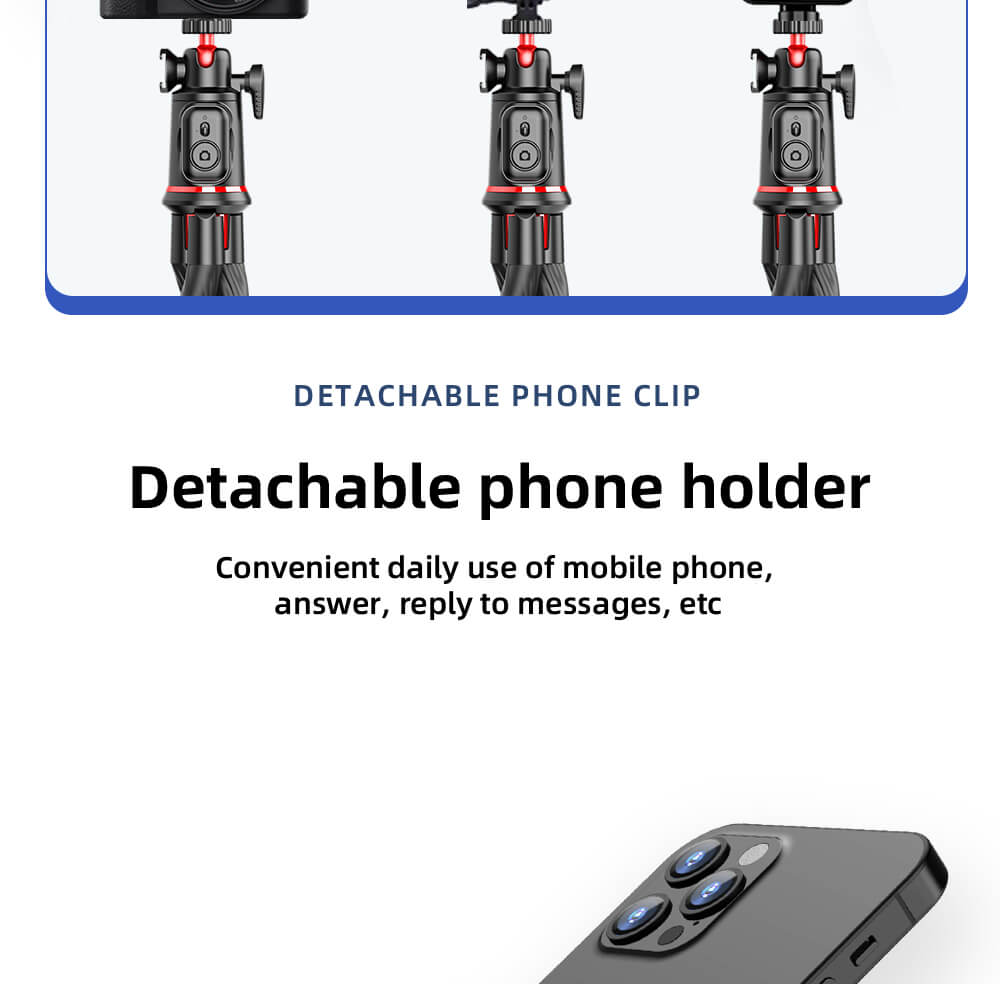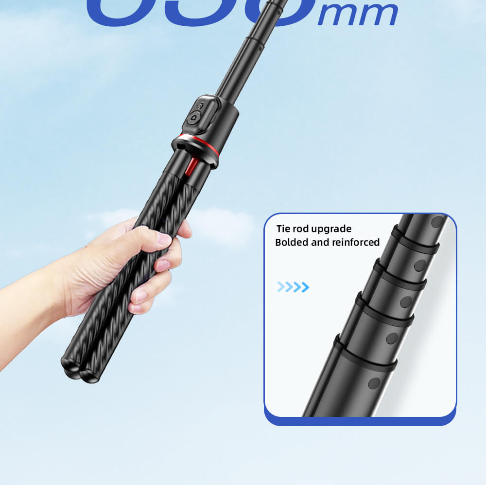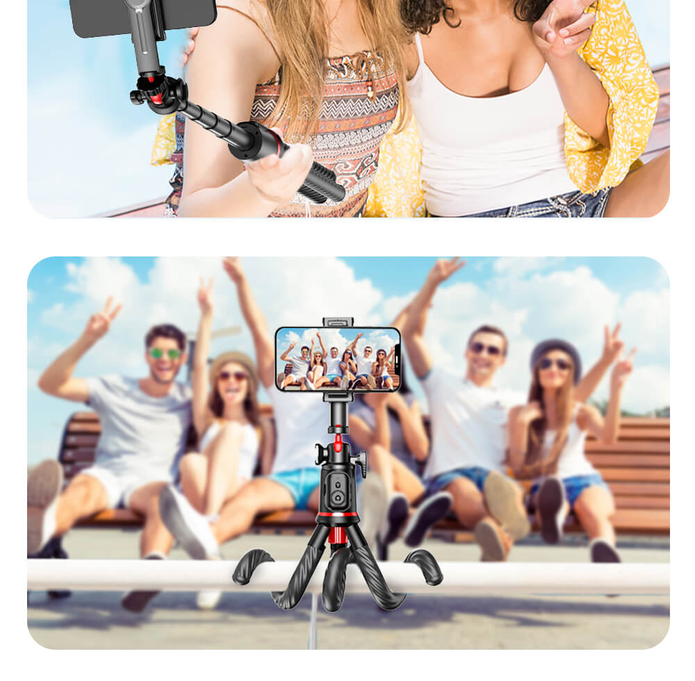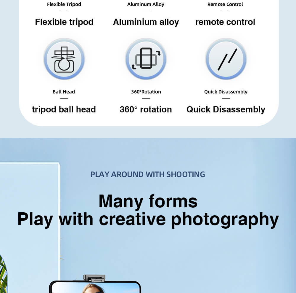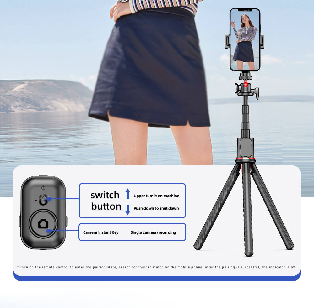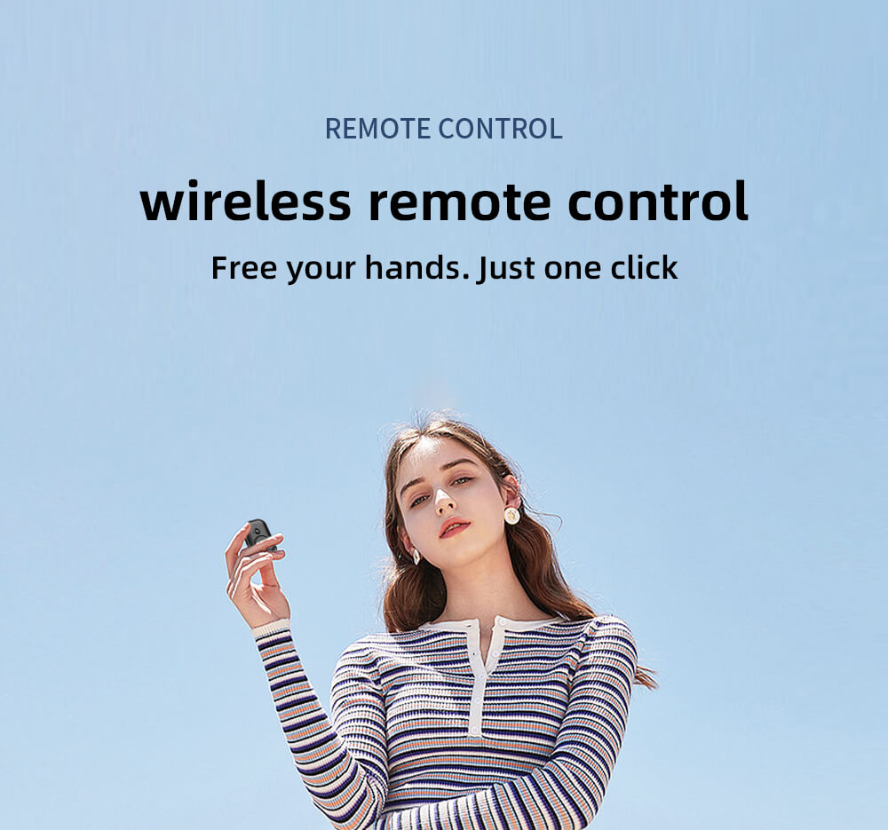 Sản phẩm đi kèm remote Bluetooth, cho phép bạn chụp ảnh hoặc quay video từ xa mà không cần phải chạm vào điện thoại hay máy ảnh. Điều này mang lại sự tiện lợi tối đa, đặc biệt khi bạn cần tạo các bức ảnh nhóm hoặc quay video mà không có người hỗ trợ.