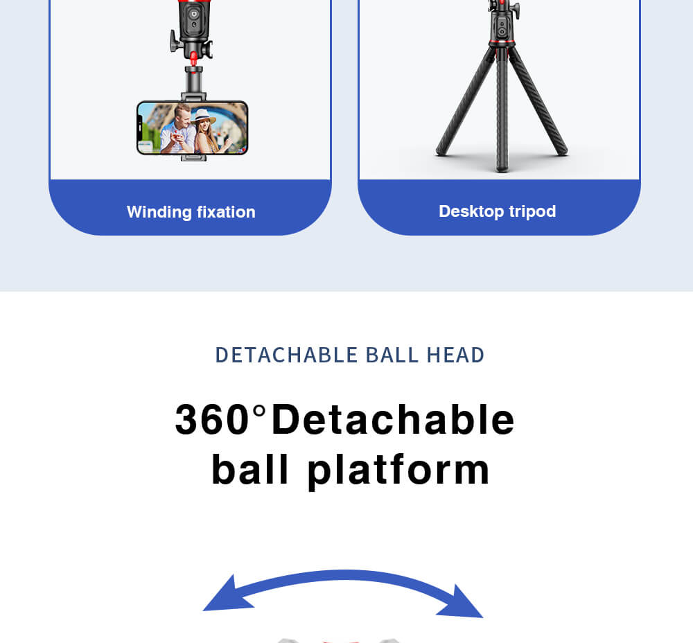 Sản phẩm có khả năng chuyển đổi linh hoạt từ gậy selfie sang chân tripod chỉ trong vài giây, giúp bạn dễ dàng chụp ảnh nhóm hoặc quay video mà không cần phải cầm nắm thiết bị, mang lại sự ổn định và chất lượng hình ảnh tốt nhất.