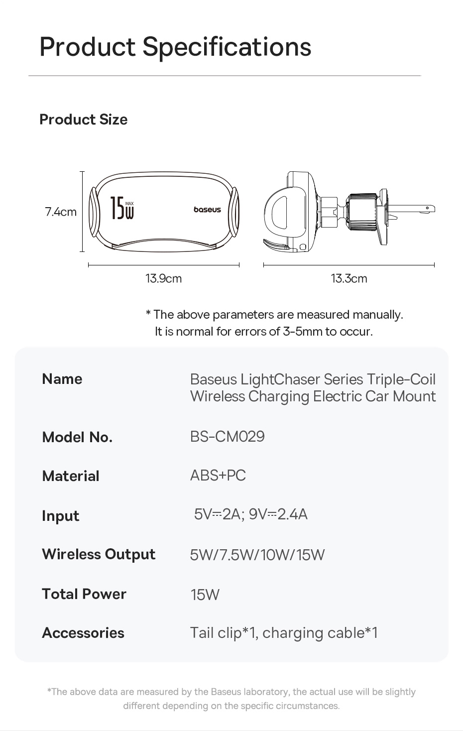 Baseus Lightchaser Series Triple-Coil Wireless Charging Electric Car Mount (BS-CM029) là một phụ kiện ô tô không thể thiếu cho những ai thường xuyên sử dụng điện thoại khi lái xe. Sản phẩm không chỉ giúp bạn sạc pin mà còn đảm bảo an toàn và mang đến sự tiện lợi tối đa.