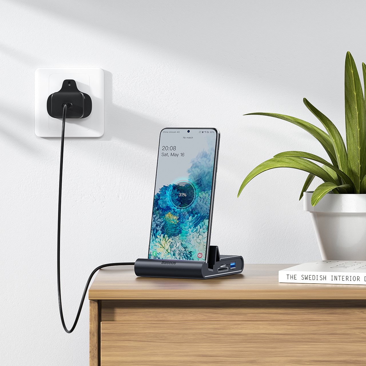 - Cắm đầu Type-C của Baseus Mate Docking vào cổng Type-C trên điện thoại.