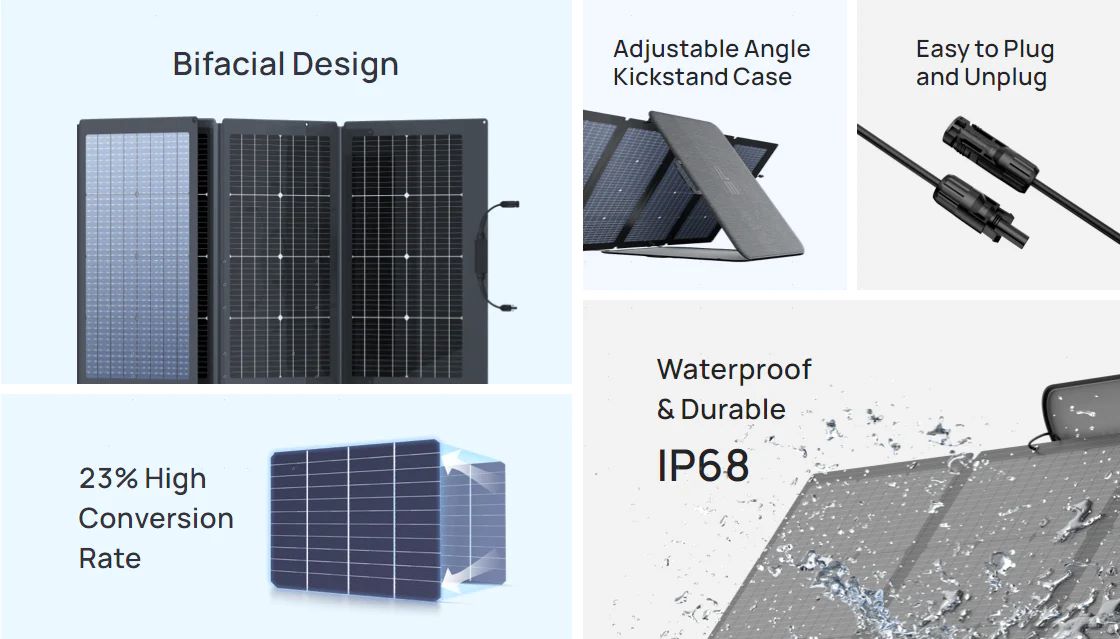 Tính năng nổi bật của Tấm pin năng lượng mặt trời EcoFlow Solar Panel 220W (2 mặt)